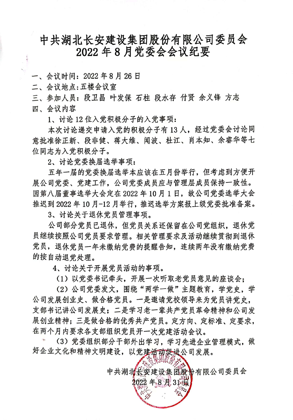 湖北長安建設(shè)集團黨委開展“兩學(xué)一做”主題黨日活動