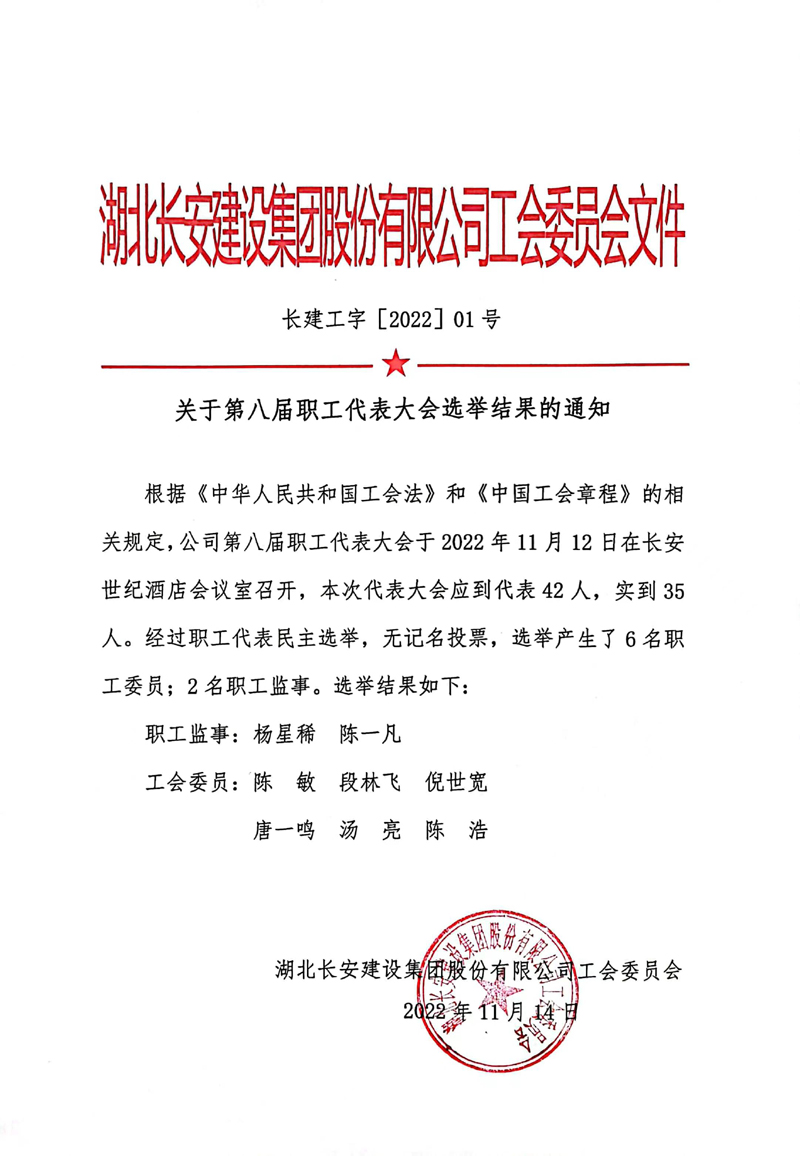 湖北長安建設(shè)集團第八屆第一次職工代表大會選舉結(jié)果公告