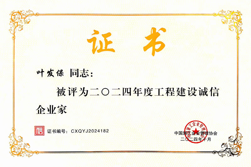 • 葉發(fā)保被評(píng)為2025年度湖北省工程建設(shè)誠(chéng)信企業(yè)家