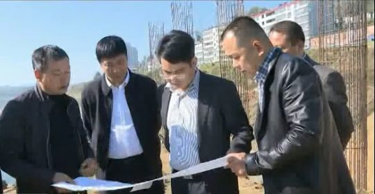 2018年11月1日,英山縣委書記陳武斌(中)一行視察長安大橋建設(shè)項目