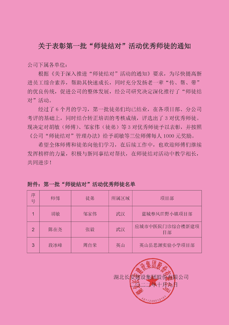 第一批“師徒結對”活動優(yōu)秀師徒
