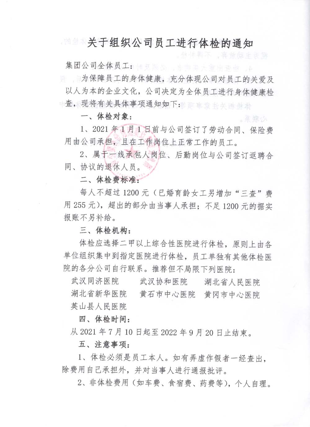 員工體檢通知