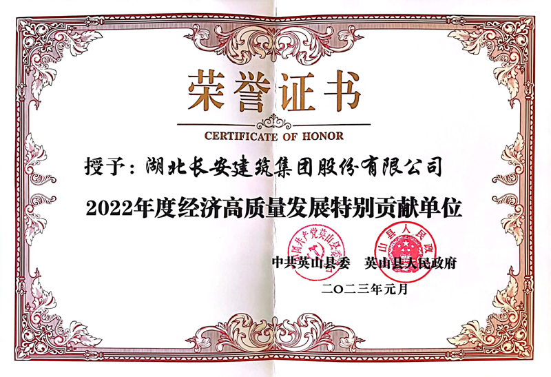 集團(tuán)榮獲英山縣“2022年度經(jīng)濟(jì)高質(zhì)量發(fā)展特別貢獻(xiàn)單位”榮譽(yù)稱號