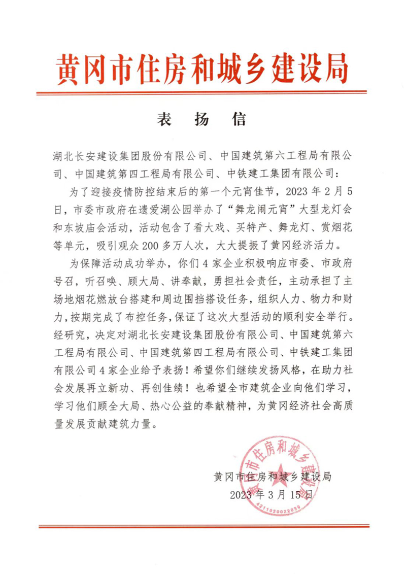 湖北省住建廳授予集團(tuán)公司“2022年度重要貢獻(xiàn)建筑企業(yè)”榮譽(yù)稱號