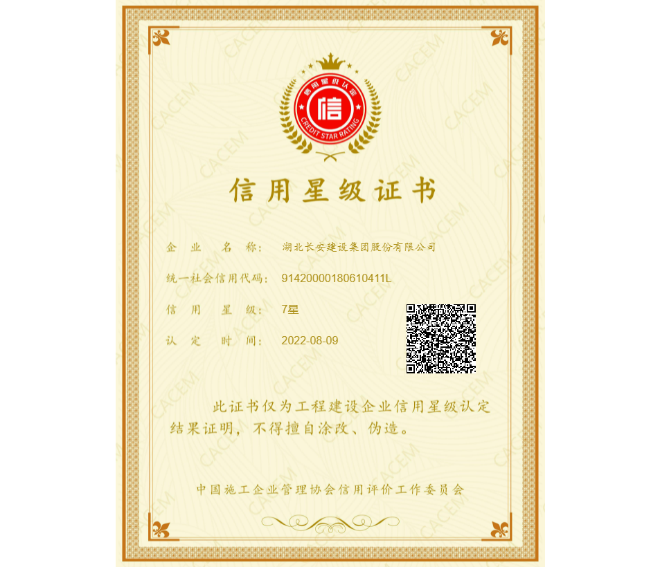 榮獲二O二二年度工程建設誠信典型企業(yè)稱號