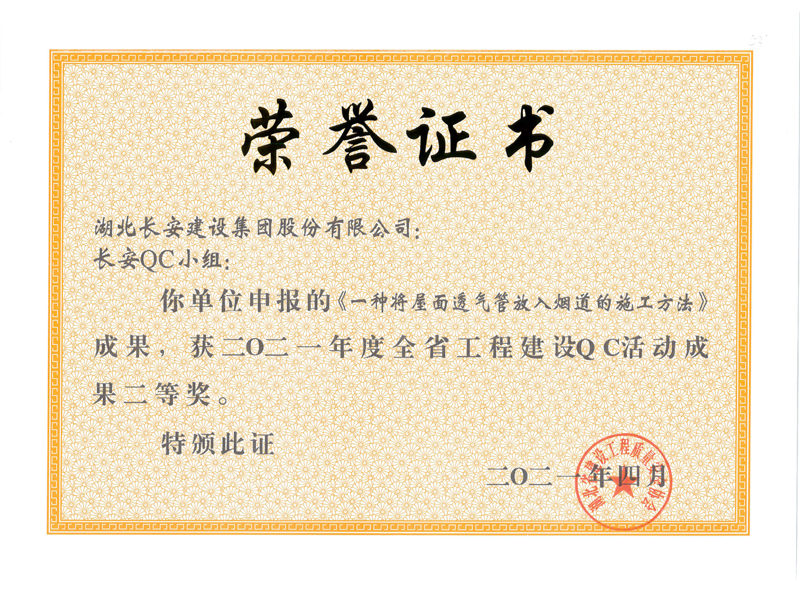 一種將屋面透氣管放入煙道的施工方法(2021年度湖北省QC活動成果Ⅱ等獎)