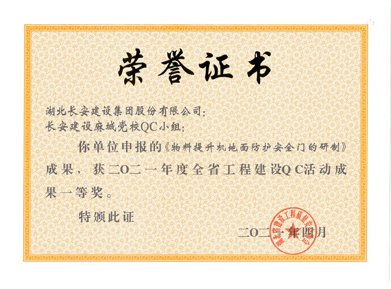 物料提升機地面防護安全門的研制(2021年度湖北省QC活動成果一等獎)