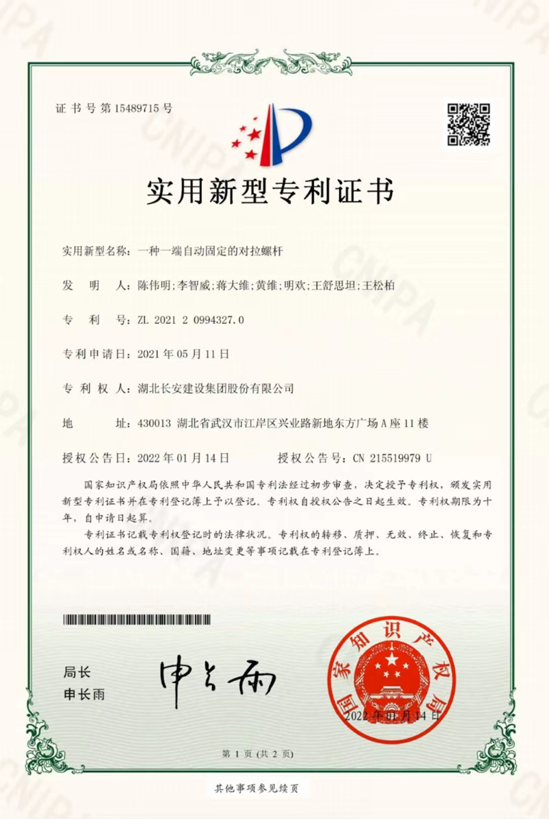 實(shí)用新型專(zhuān)利:一種一端自動(dòng)固定的對(duì)拉螺桿