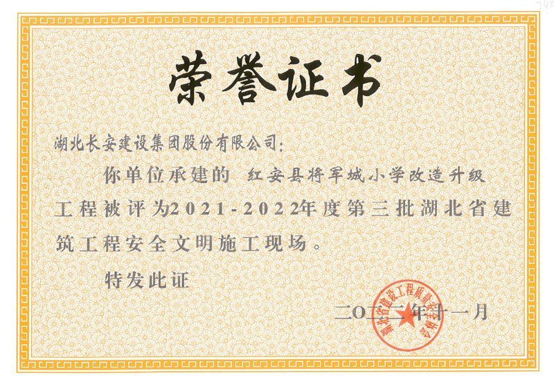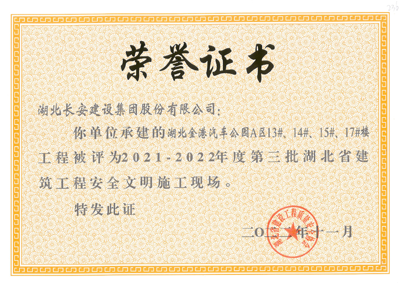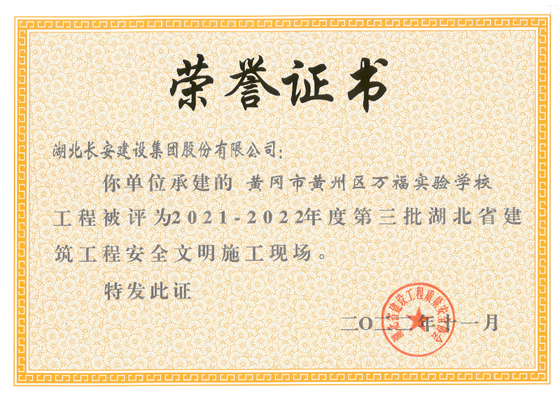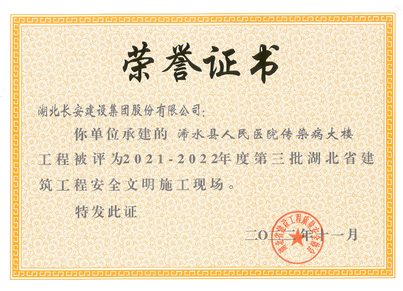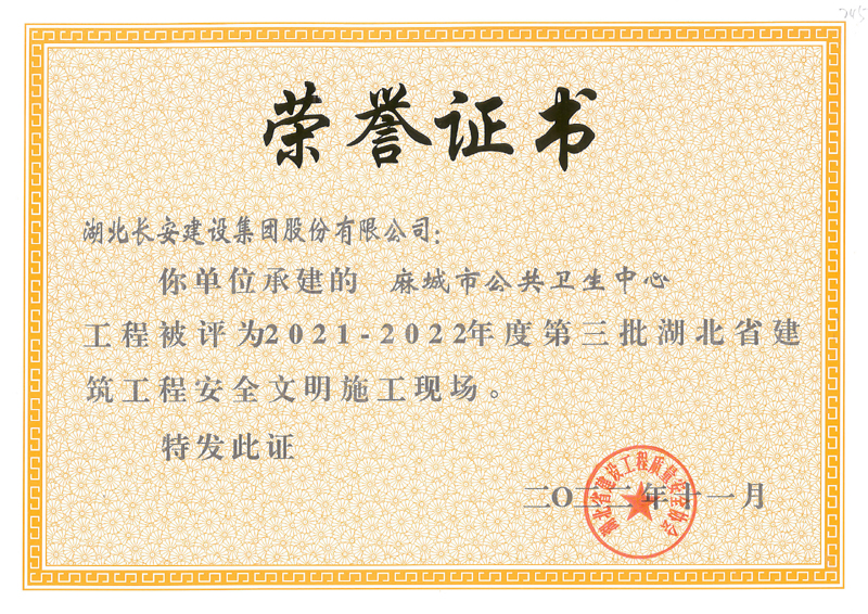 麻城市公共衛(wèi)生中心等8個(gè)工程項(xiàng)目榮獲2021-2022年度第三批湖北省建筑工程安全文明施工現(xiàn)場
