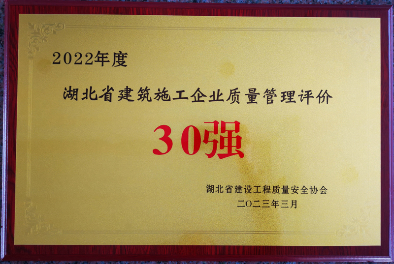 集團(tuán)公司榮膺2022年度湖北省建筑施工企業(yè)質(zhì)量管理評價第9名
