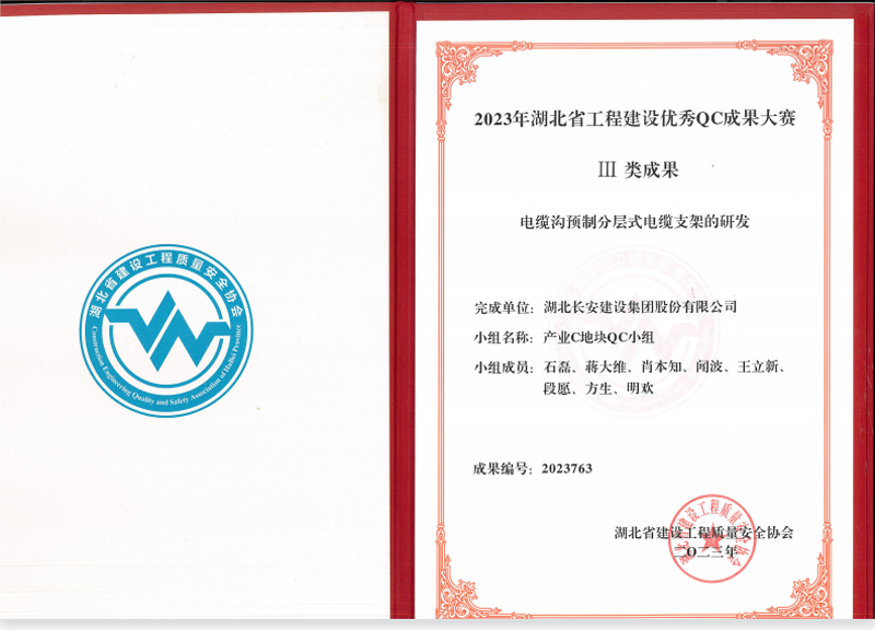 《電纜溝預(yù)制分層式電纜支架的研發(fā)》獲評湖北省工程建設(shè)優(yōu)秀QCⅢ類成果獎