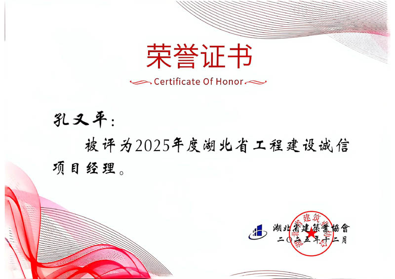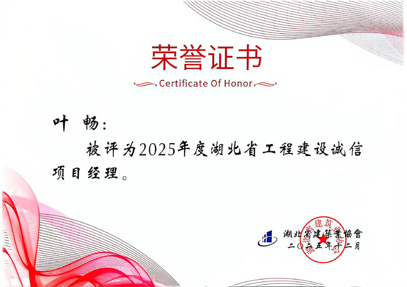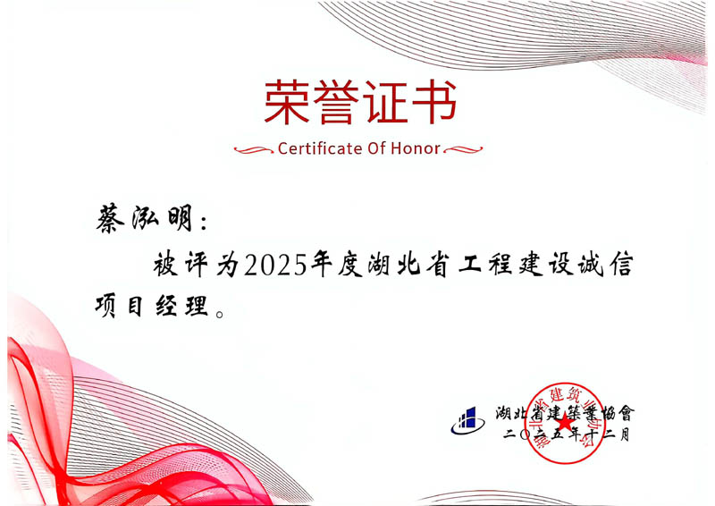 葉暢、蔡泓明、陳秀良、孔又平等4人被評為2025年度湖北省工程建設誠信項目經理