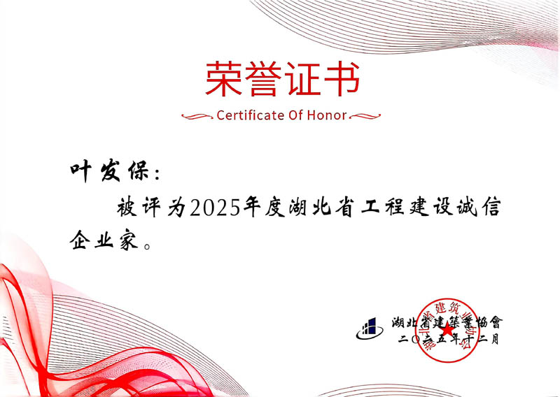 葉發(fā)保被評(píng)為2025年度湖北省工程建設(shè)誠(chéng)信企業(yè)家