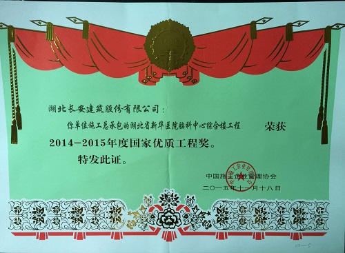 湖北省新華醫(yī)院腦科中心綜合樓國優(yōu)獎牌2015