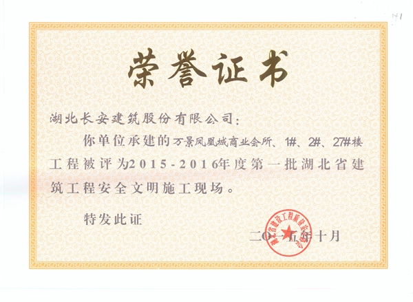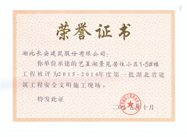 藝星湖景苑小區(qū)1-5號樓安全文明現(xiàn)場證書