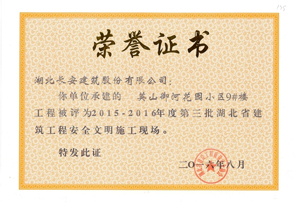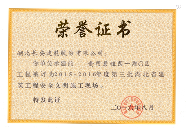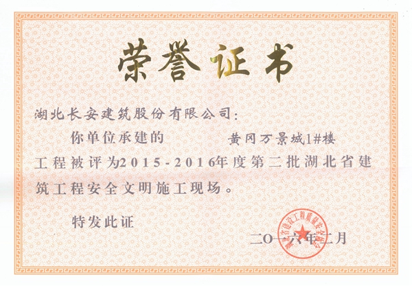 黃岡萬景城1#樓被評(píng)為2015-2016年度第二批省安全文明施工現(xiàn)場(chǎng)