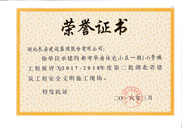 都市華府小區(qū)項目一期1-6#樓2017-2018年度第二批湖北省建筑工程安全文明施工現(xiàn)場