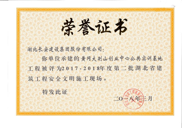 黃岡大別山創(chuàng)業(yè)中心公共實訓(xùn)基地2017-2018年度第二批湖北省建筑工程安全文明施工現(xiàn)場