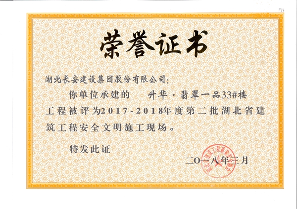 升華翡翠一品33#樓2017-2018年度第二批湖北省建筑工程安全文明施工現(xiàn)場