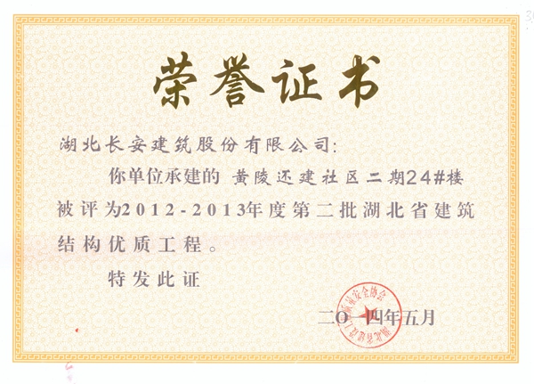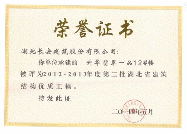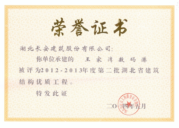 2014年省建筑結(jié)構(gòu)優(yōu)質(zhì)工程榮譽(yù)證書