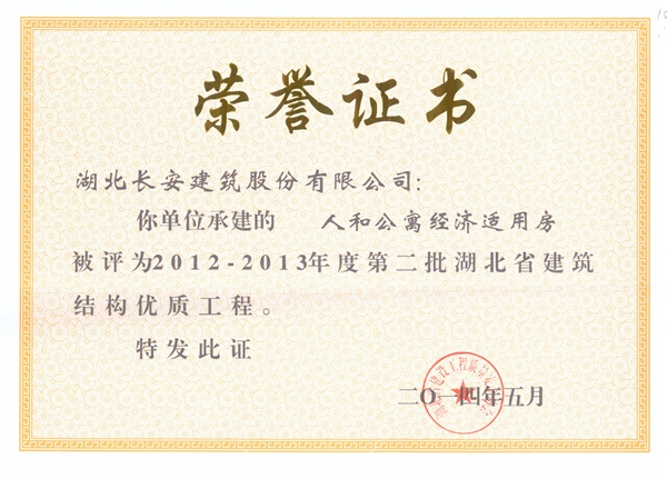 人和公寓經(jīng)濟(jì)適用房2012-2013年度省建筑結(jié)構(gòu)優(yōu)質(zhì)工程