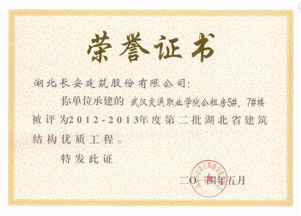 武漢交通職業(yè)學(xué)院公租房5、7#樓2012-2013年度省建筑結(jié)構(gòu)優(yōu)質(zhì)工程