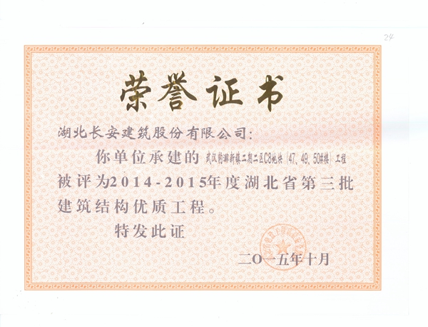 豹澥二期二區(qū)C8地塊47、49、50號樓建筑結(jié)構(gòu)優(yōu)質(zhì)證書
