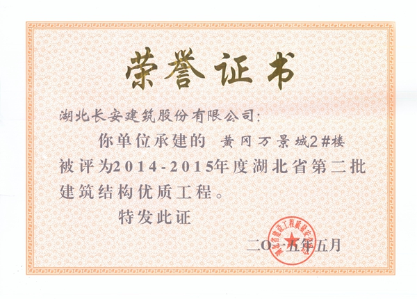 黃岡萬景城2#樓2014-2015年度省結(jié)構(gòu)優(yōu)質(zhì)