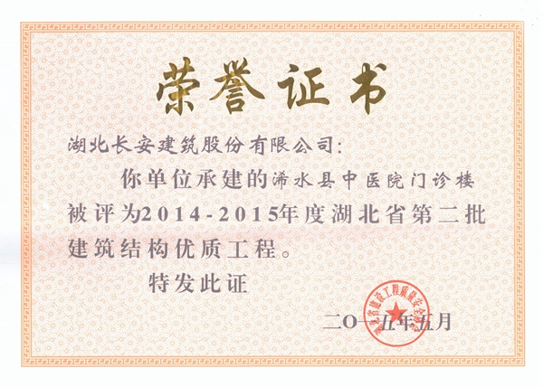 浠水中醫(yī)院門診樓2014-2015年度省結(jié)構(gòu)優(yōu)質(zhì)