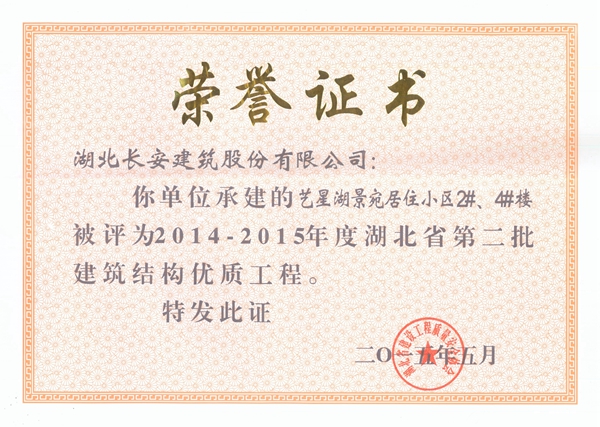 藝星湖景宛居2、4#樓2014-2015年度省結(jié)構(gòu)優(yōu)質(zhì)