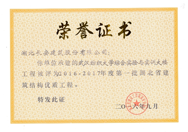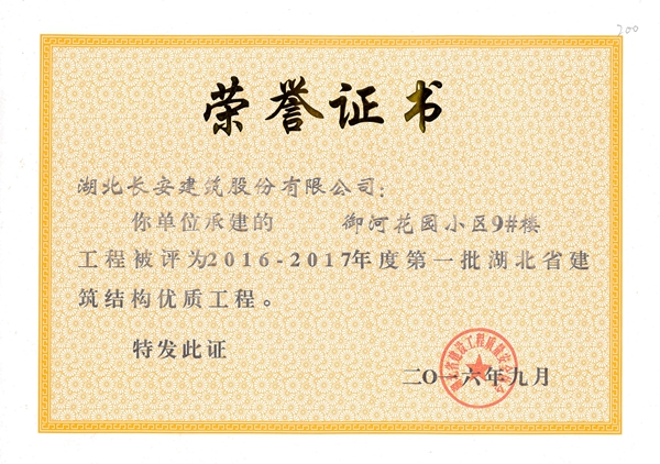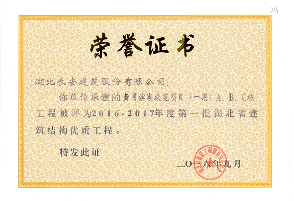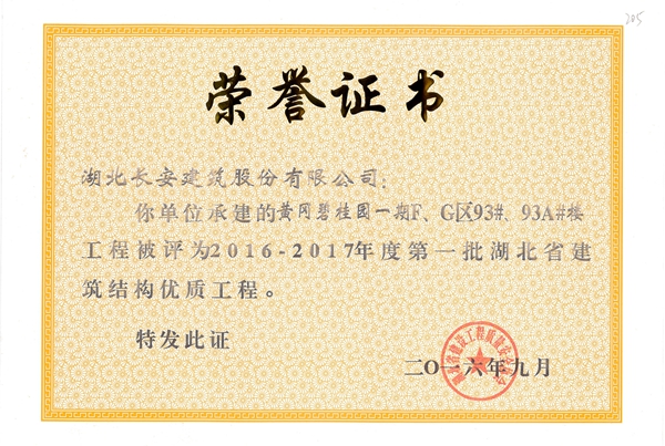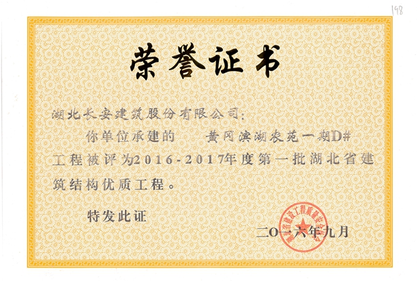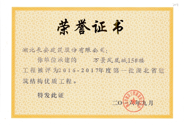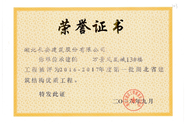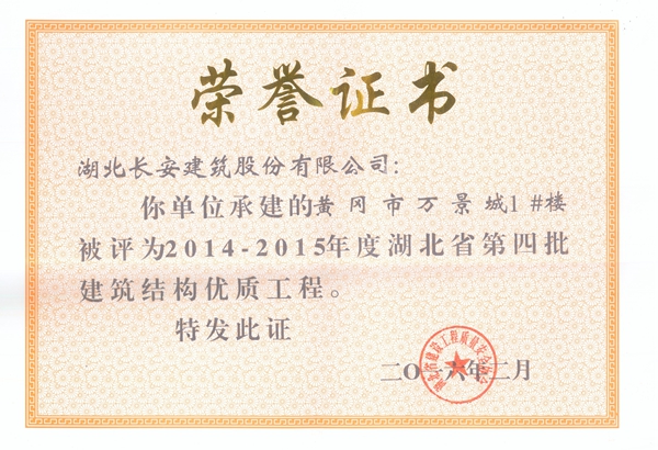 黃岡萬景城1#樓被評為2014-2015省結構優(yōu)質