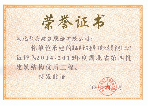 英山金石壹號(城北農貿市場)被評為2014-2015省結構優(yōu)質
