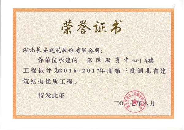 保障動員中心1#樓被評為2016-2017年度第三批省結構優(yōu)質(zhì)