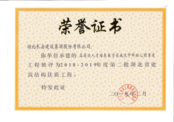 高層次人才培養(yǎng)教育設施及中科幼兒園重建工程被評為2018-2019年度第二批省結(jié)構(gòu)優(yōu)質(zhì)工程