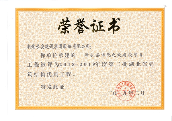 浠水市民之家建設項目工程被評為2018-2019年度第二批省結(jié)構(gòu)優(yōu)質(zhì)工程