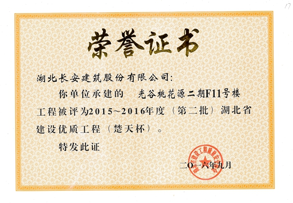 光谷桃花源二期F11號(hào)樓省優(yōu)質(zhì)(楚天杯)2016