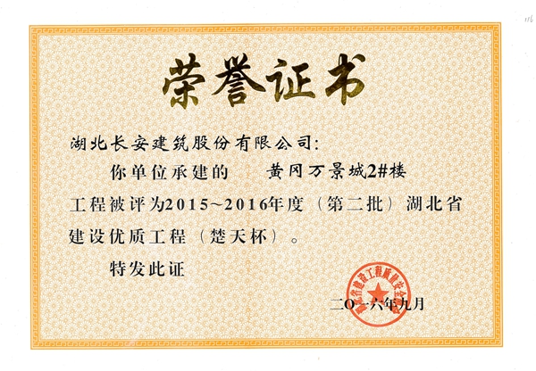 黃岡萬(wàn)景城2#樓省建設(shè)優(yōu)質(zhì)(楚天杯)2016