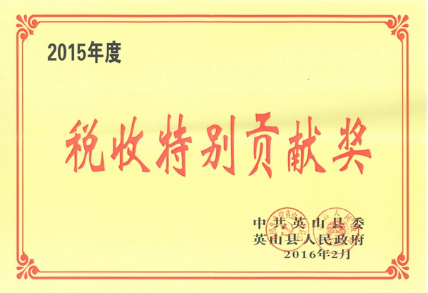 2015年度稅收特別貢獻(xiàn)獎(jiǎng)(英山)