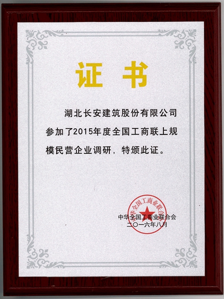 參加2015年度全國(guó)工商聯(lián)上規(guī)模民營(yíng)企業(yè)調(diào)研2016
