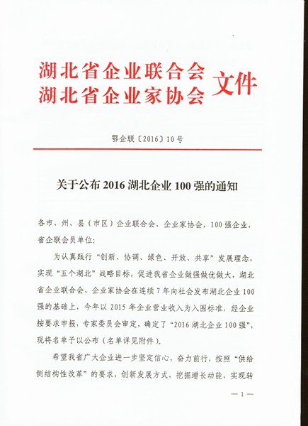 湖北民營(yíng)企業(yè)100強(qiáng)25位(2016)