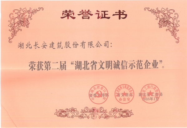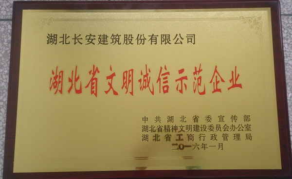 湖北省文明誠(chéng)信示范企業(yè)證書2016