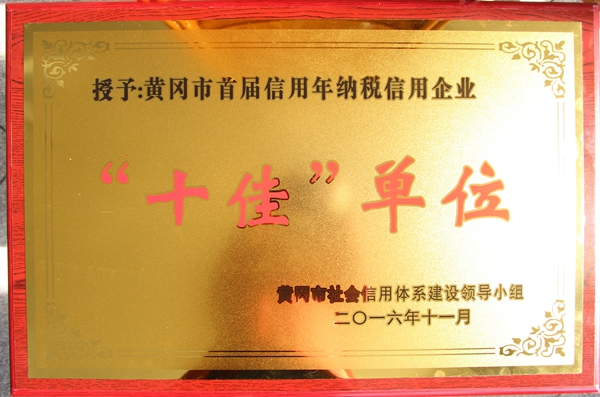 授予黃岡市首屆信用年誠(chéng)信經(jīng)營(yíng)企業(yè)“十佳”單位(2016)