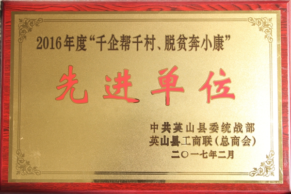 2016年度“千企幫千村、脫貧奔小康”先進單位(英山)2017