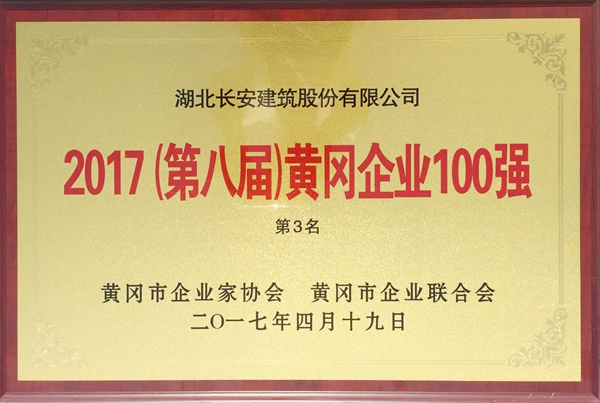 2017(第八屆)黃岡企業(yè)100強第3名獎牌