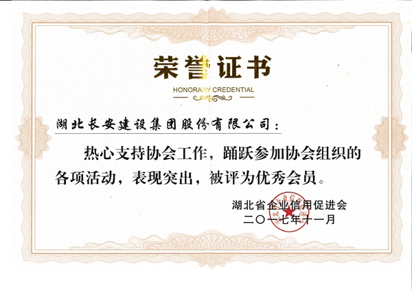 公司被湖北省企業(yè)信用促進會評為優(yōu)秀會員2017
