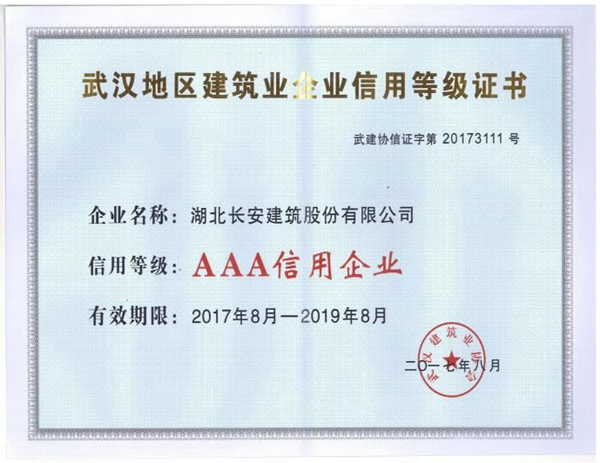 武漢地區(qū)建筑業(yè)AAA信用至2019年8月