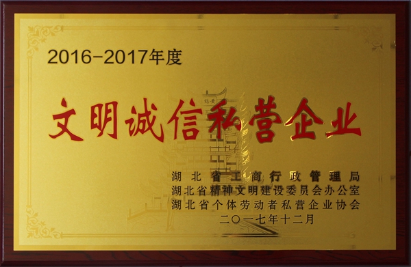 公司被評(píng)為2016-2017年度“湖北省文明誠(chéng)信私營(yíng)企業(yè)”2017