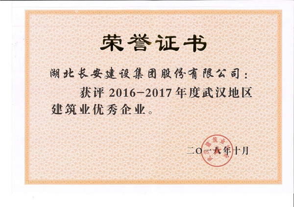 公司獲評(píng)2016-2017年度武漢地區(qū)建筑業(yè)優(yōu)秀企業(yè)(獎(jiǎng)牌)