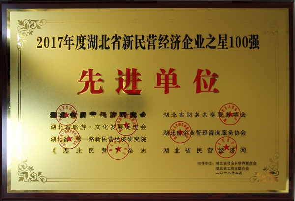 2017年度湖北省新民營(yíng)經(jīng)濟(jì)企業(yè)之星100強(qiáng)先進(jìn)單位2018