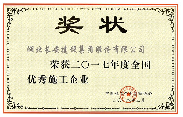 2017年度全國(guó)優(yōu)秀施工企業(yè)獎(jiǎng)牌